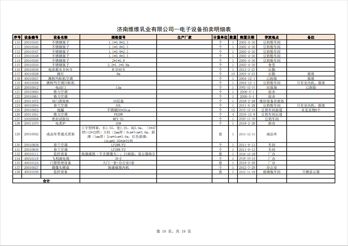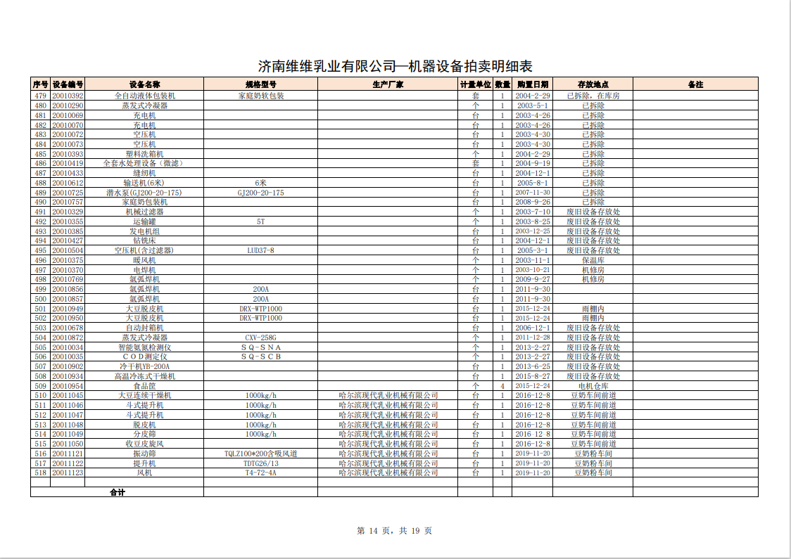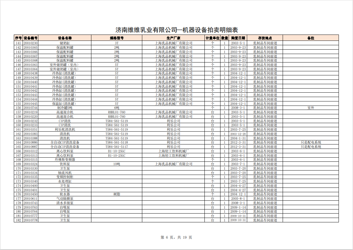 主要包含:牛奶生產(chǎn)設(shè)備、豆奶生產(chǎn)設(shè)備、利樂(lè)無(wú)菌灌裝設(shè)備、各型不銹鋼儲(chǔ)罐和發(fā)酵罐、鍋爐、烘干設(shè)備、空調(diào)、變壓器、配電設(shè)備、倉(cāng)儲(chǔ)設(shè)備等。