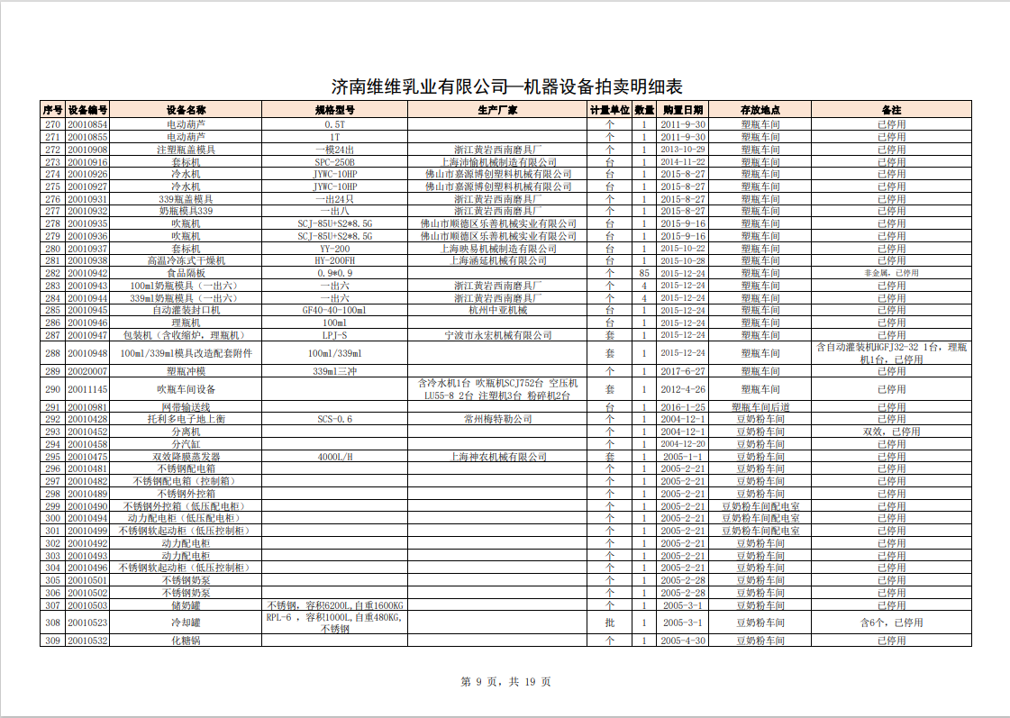 關(guān)注微信公眾號(hào)我公司受委托,定于2023年10月28日10時(shí)(網(wǎng)絡(luò)延時(shí)除外)在中拍平臺(tái)通過(guò)網(wǎng)絡(luò)競(jìng)價(jià)方式公開(kāi)拍賣:濟(jì)南維維乳業(yè)有限公司食品飲料生產(chǎn)加工設(shè)備及固定資產(chǎn)一批。