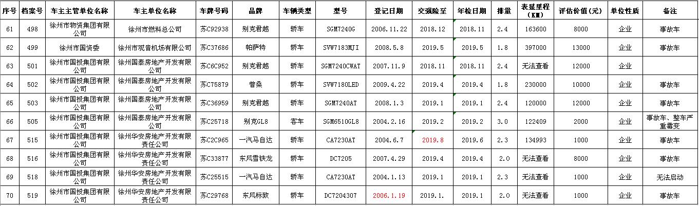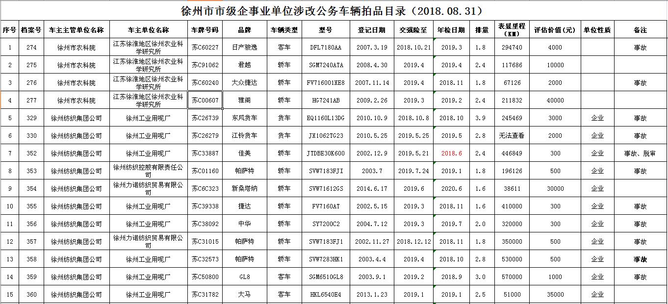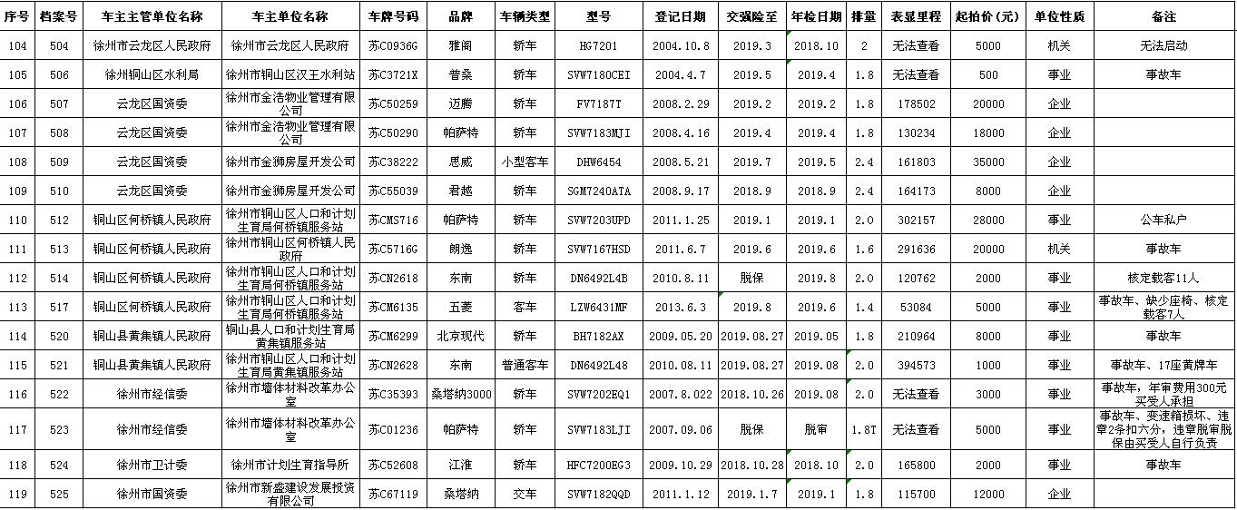 一、拍賣標的:徐州市市級及區(qū)級企事業(yè)單位改革公務(wù)車輛共約114輛(詳見拍品目錄)。